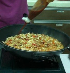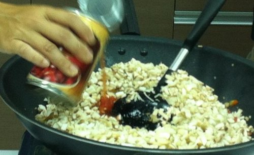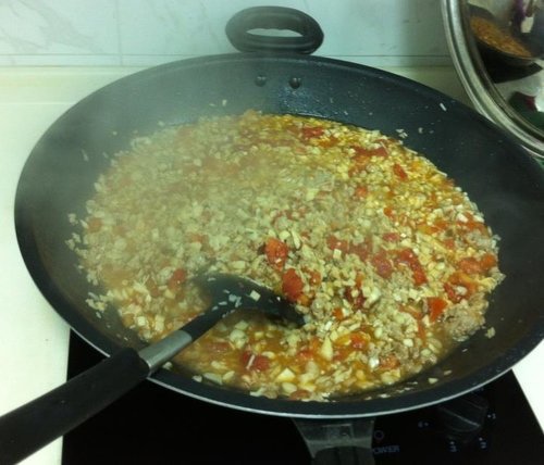4) 在加入蕃茄下去拌炒,要炒到茄紅素出來。